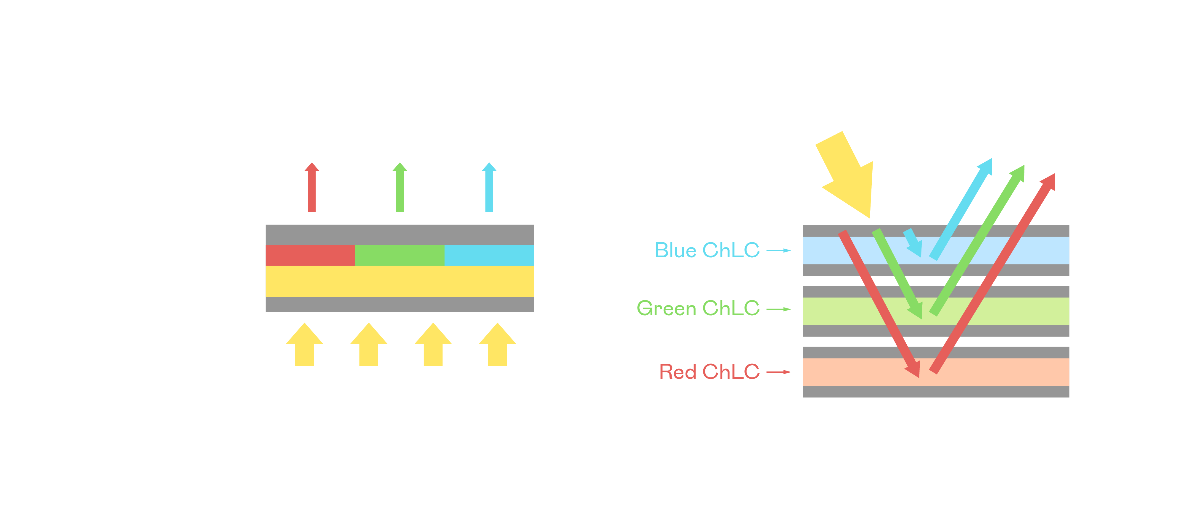 尊龙凯龙时官网胆固醇液晶显示器是由红、绿、蓝三层胆固醇液晶面板堆叠而成,并采用无彩色滤光片设计,减少环境光在反射过程中的损耗。